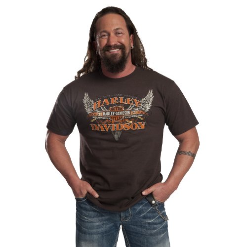 This limited-edition Harley-Davidson Military Sales shirt features the timeless images of a dramatic eagle and the classic H-D bar-and-shield logo. The back also showcases the classic Harley bar-and-shield logo and is customized in commemoration of those brave service members who have served, or are serving in Kandahar, Afghanistan. Dark chocolate. 100% cotton. Mens sizes M3X.
