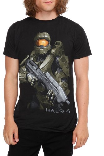 This black T-shirt from Halo 4 features a large front screen of Master Chief.