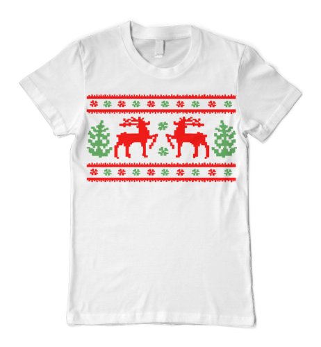 I really want one of those Vintage Christmas sweaters like my Grandma wears, but I live in a warm weather climate . Or possibly I go for the layered thermal look , or I just like wearing t-shirts. Plus, I don't like buying my Christmas attire at a thrift shop because I think it's kinda creepy. Jackpot !! The 'Ugly Christmas Sweater' T-Shirt is not a sweater at all , but it keeps up the Christmas Spirit. Features a pair of Reindeer in an authentic Christmas Sweater Style.